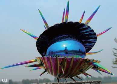 七彩金属艺术是黄剑经过多年的研究和实践,精心创造出的一种新型的雕塑工艺。其色彩璀璨夺目,幻变无穷,具有奇美无比的艺术效果。在阳光的照耀下,更是流光溢彩,变幻迷离,美仑美奂。其色泽稳定持久,可经风雨暴晒,不锈不朽,历久如新。 近年来,黄剑用七彩金属工艺创作了丰富多彩的艺术作品,受到国内外专家的一致好评和公众的广泛赞赏。