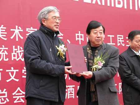 中国美术家协会主席刘大为为建设部原副部长宋春华颁发中国雕塑突出贡献奖